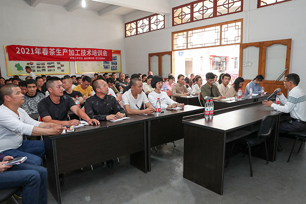 消费日报·视点中国综合报道福建电(吴福星 图/文:邱汝泉)3月30日,福建武夷山市国家级非物质遗产大红袍制作技艺传承人、武夷山市茶业同业公会会长刘国英在给茶农上春茶生产加工技术课。当日,武夷山市星村镇巨口村举办春茶生产加工技术培训班,旨在提高茶农的春茶生产加工技术,来自巨口村及周边村的茶农茶企近200人参加了培训。此次春茶生产加工技术培训班由武夷山市科协、星村镇科协、星村镇科技特派员工作站、星村镇巨口村举办。