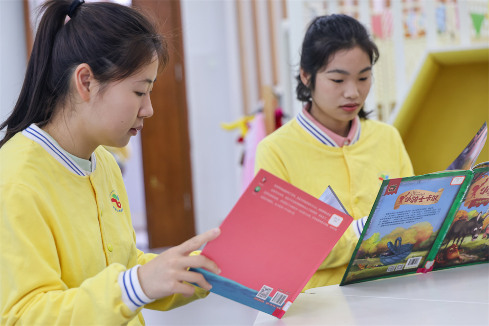 图四、图五、4月22日,南平市幼儿教育“全学科阅读”教学开放活动中武夷山市百花幼儿园教师阅读。